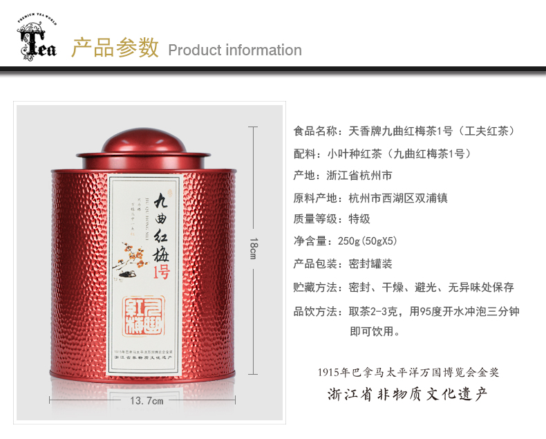 - 配料表: 小叶种红茶(九曲红梅茶1号)
